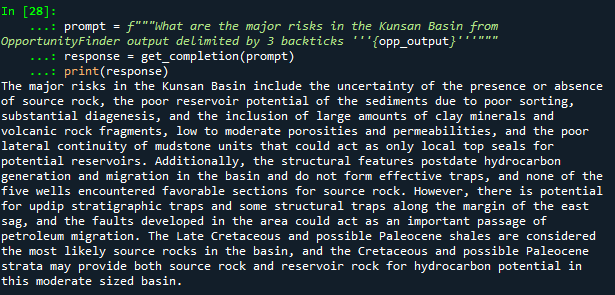 Applying Generative AI (ChatGPT) to subsurface and wells content. I’ve been applying OpenAI’s ChatGPT to the graph data structures produced by the OpportunityFinder(R) and GeoClassifier(R) NLP algorithms after they have processed unstructured data (reports, presentations, literature etc) at a sentence level.