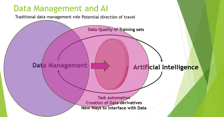Data Management and Artificial Intelligence. One of the models from my presentation at the Society for Professional Data Managers yesterday. Two sides of the same coin. Evolving nature of the role.