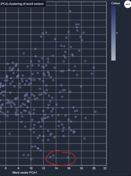 Using this technique (and others) we can find other associations, driven by the text, that are not so easily explainable by our current knowledge. This can lead to potential abductive discovery of new ideas, opportunities, and areas for further research.