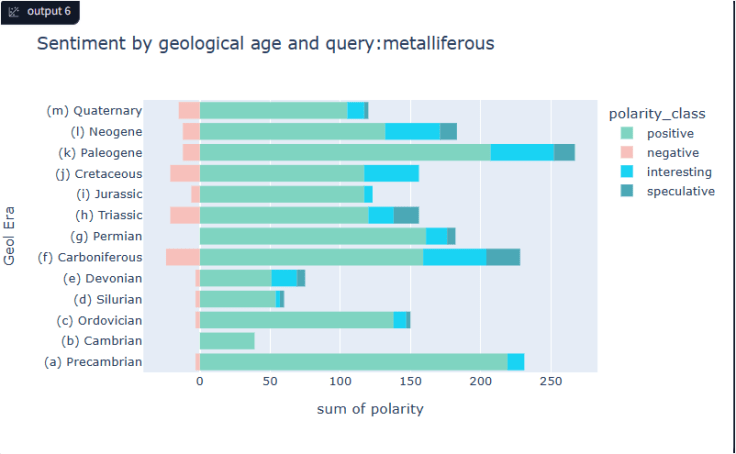 Above – sentiment for the query ‘metalliferous’ within the USGS corpus