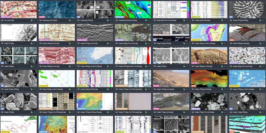 The simple classes I’ve started with are: SEM IMAGE, BOREHOLE LOG, THIN SECTION, GEOLOGY MAP, LOCATION MAP, MODEL, SEISMIC SECTION, CORE PHOTOGRAPH, REMOTE SENSING IMAGE, OUTCROP and CHARTS-CROSSPLOT.
