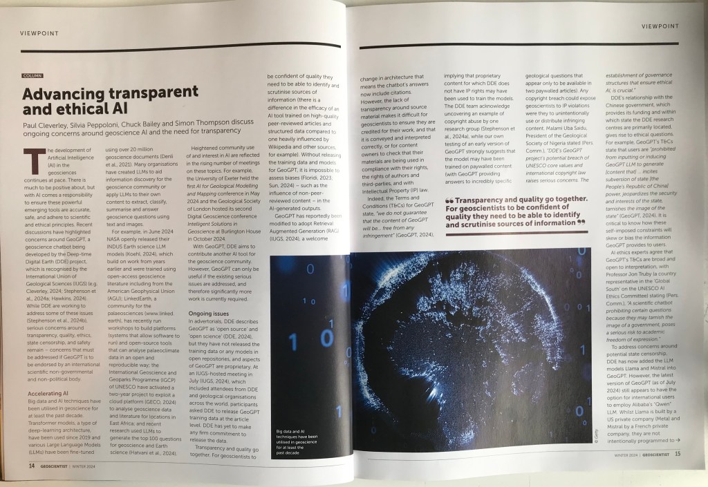 There is a public conversation occuring that will likely have profound implications for the ethics of geoscience Artificial Intelligence (AI) for years to come. You can read about it in the Geoscientist Winter Edition published today, also online.