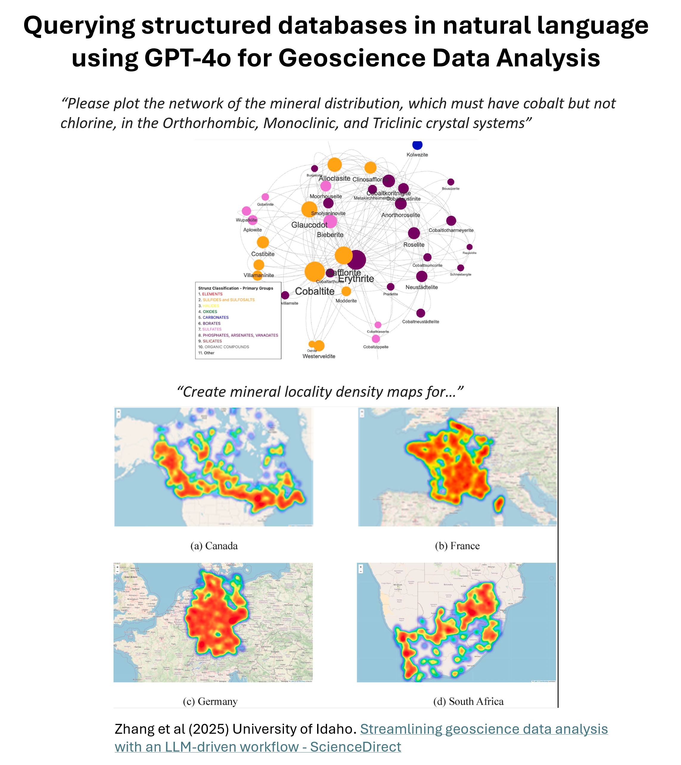 Interesting paper from Zhang et al (2025) from the University of Idaho connecting Open AI’s GPT-4o Large Language Model (LLM) through prompt engineering to the mineral database Mindat via the Python OpenMindat API. Mindat is viewed annually over 50 million times making a significant contribution to the geological community.