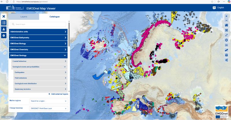 More Open access geological data. The European Marine Observation and Data Network (EMODnet) map viewer includes bathymetry, geological, biological, mineral and chemical data.