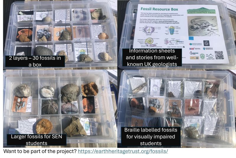 Fossil Box for Schools including Special Educational Needs. I met up with Mark Baggott yesterday from the Earth Heritage Trust. He has been doing an absolutely remarkable job sourcing British Fossils in labeled boxes free for schools. So far over 150 schools have benefitted.