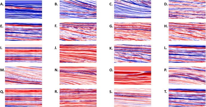 A dataset comprising 160 000 synthetic seismic images that represent conformable and four types of seismic reflection terminations (truncation, toplap, onlap, and downlap) were created using geometric geological modelling and 1D convolution seismic modelling. The dataset was then split into two classes (“Contains Termination” and “No Termination”). A new CNN model architecture named “Seismic Reflection Terminations Attribute (SRT-Ai)” was trained on 80 % of the synthetic seismic dataset. SRT-Ai predicted the test set (remaining 20 %) with an accuracy and precision of 99.9 %.