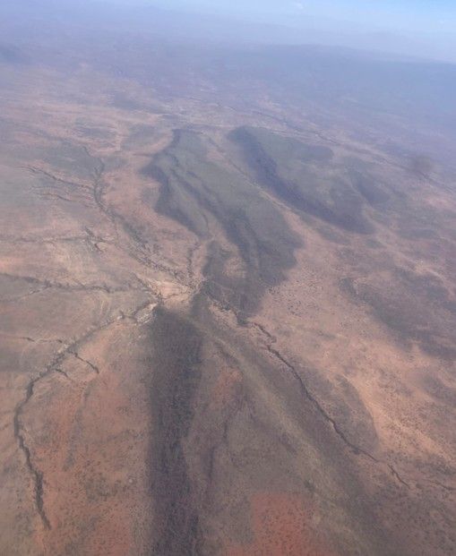 I was fortunate to visit the southern part of the East African Rift recently, South of Mt Suswa, beautiful flood trachytes (lava) along the N-S fissures of the rift floor. Reported to have erupted approximately 1 Million years ago (Pleistocene). Subsequent erosion has left these elongated volcanic features.